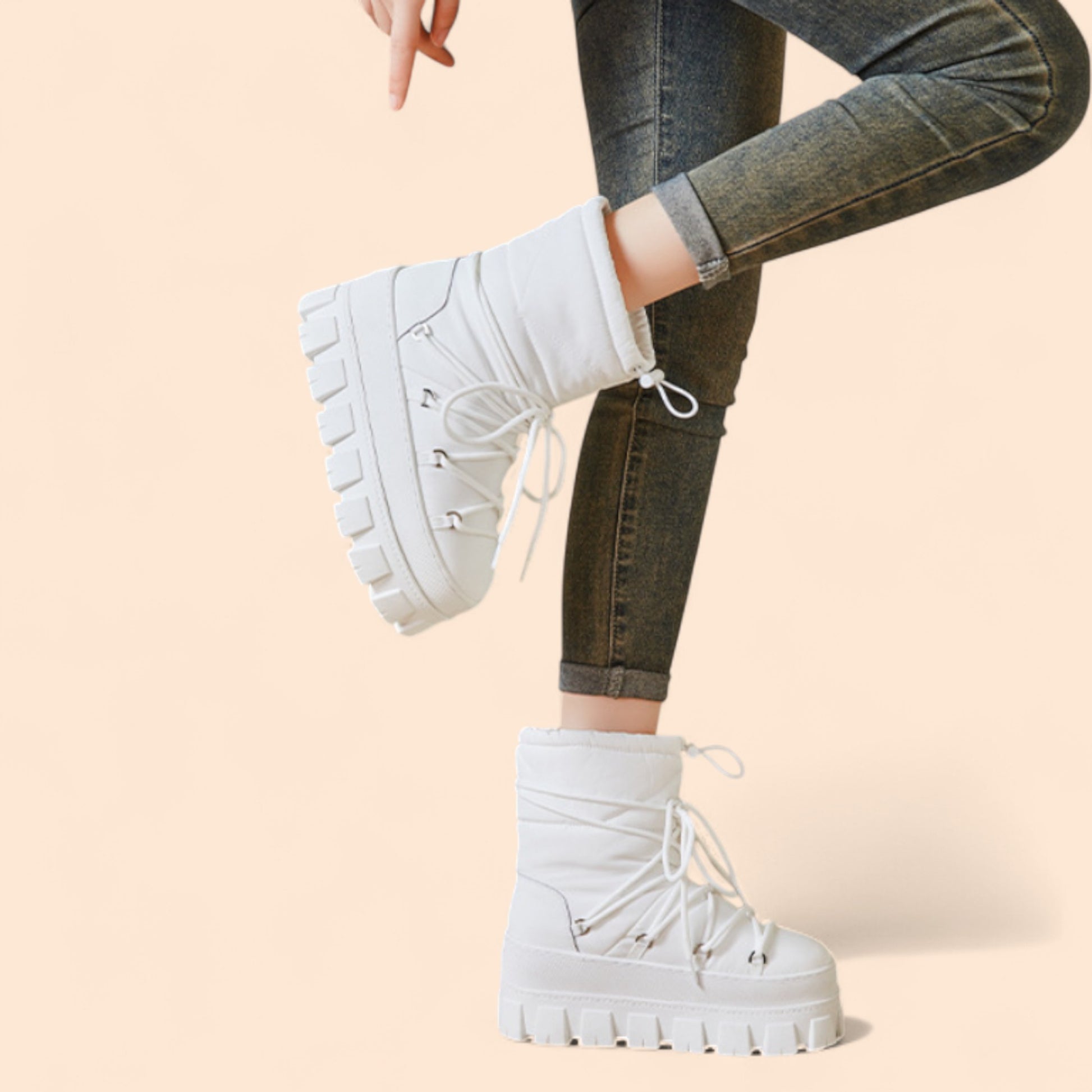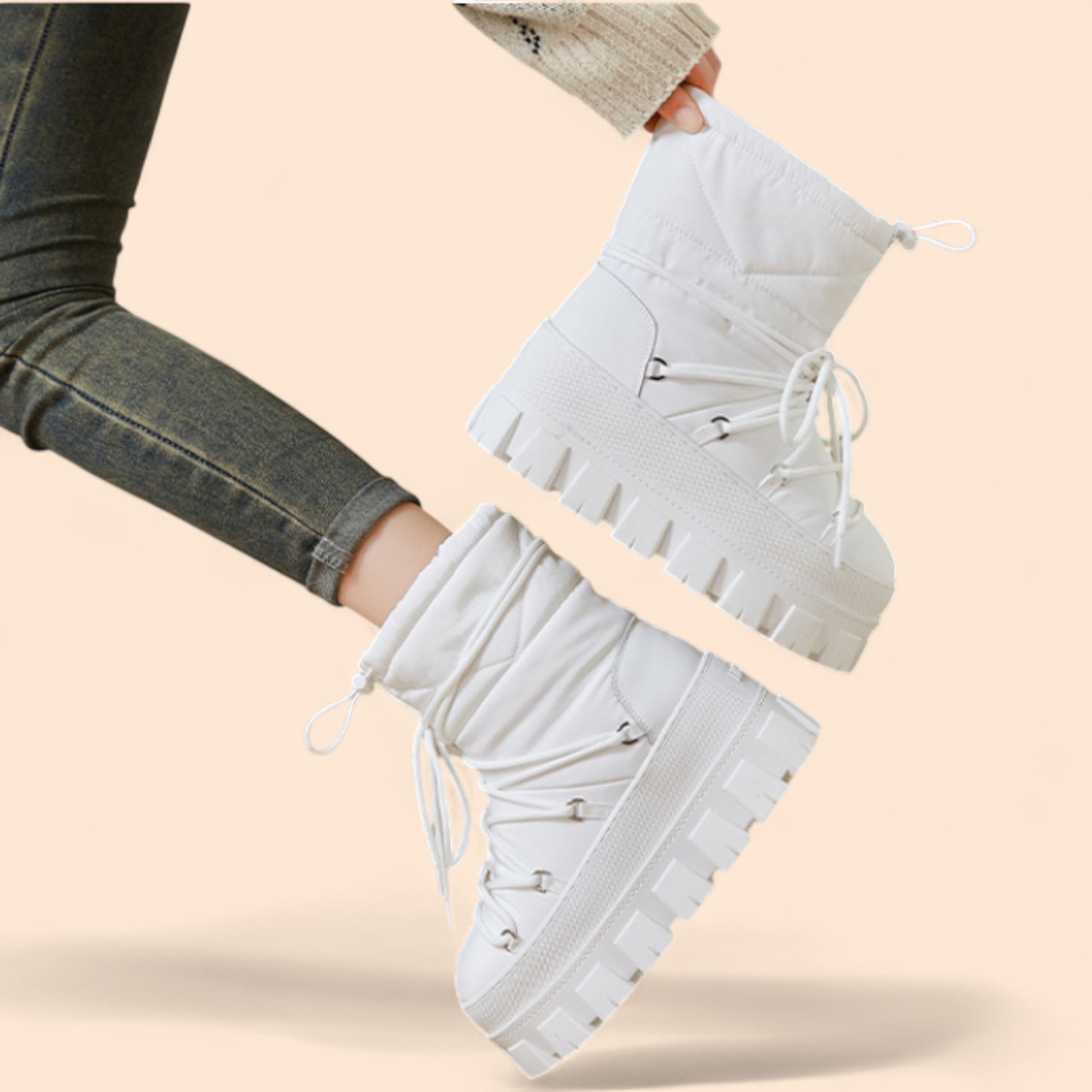 Las Botas Blancas Plataforma Nevada son una pieza clave para la temporada. Su diseño versátil y su color blanco las convierten en una opción atemporal que combina fácilmente con tonos neutros, tierra o incluso vibrantes. Su estructura sólida, su confort y su estética minimalista hacen de ellas un básico imprescindible que eleva cualquier look.