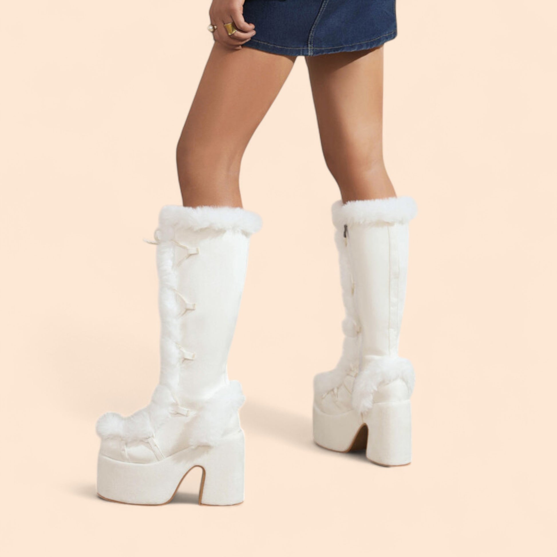 Botas Blancas Plataforma – Glamour Invernal con Altura y Suavidad