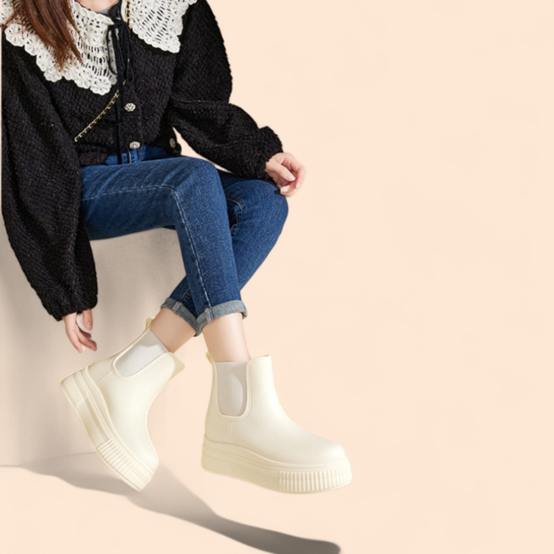 Gracias a su diseño atemporal y su color versátil, las Botines Blancas Plataforma Lluvia se convierten en una pieza esencial para las temporadas de otoño, invierno y primavera. Combinan fácilmente con diferentes paletas y estilos, aportando altura, ligereza y un toque chic a cada outfit.