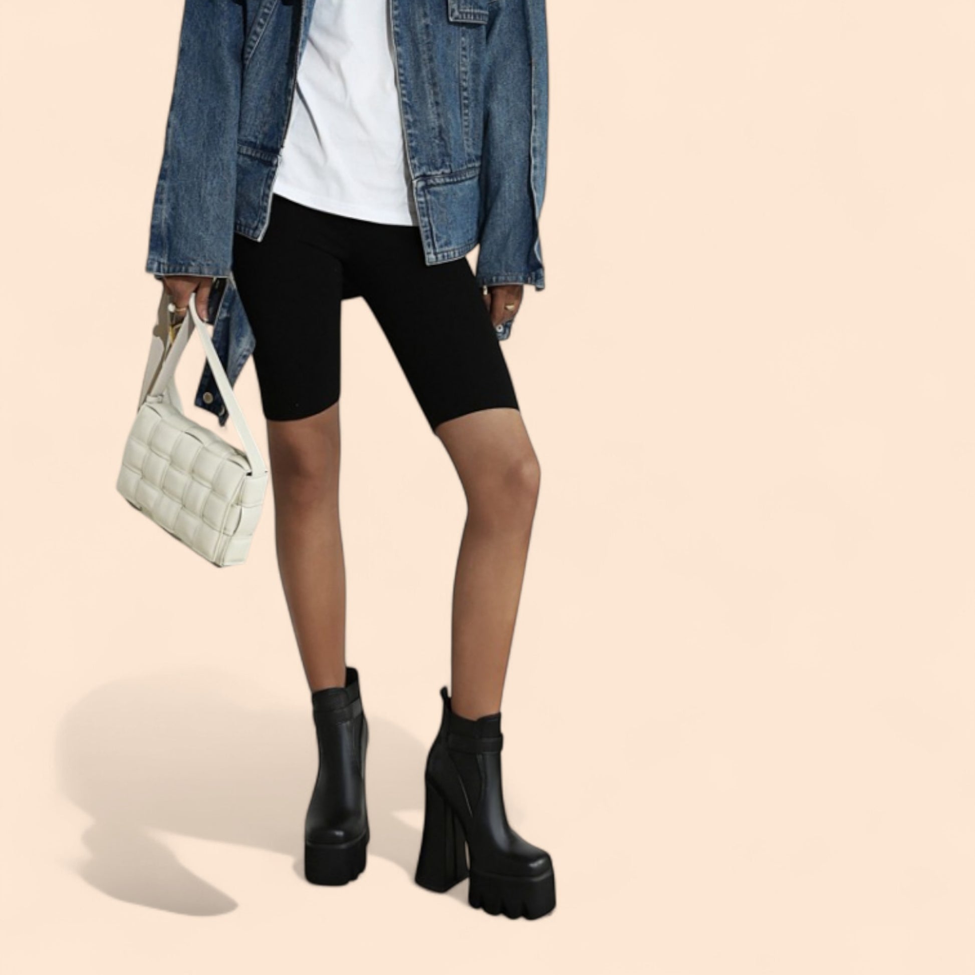 Si prefieres un estilo con más detalles, te encantará explorar nuestra colección de botines con plataforma y cordones, perfectos para quienes desean un toque más rebelde y dinámico sin renunciar a la altura. Por su parte, el modelo Enigma en negro combina fácilmente con faldas, vestidos o pantalones ajustados, aportando un aire moderno, elegante y lleno de carácter.