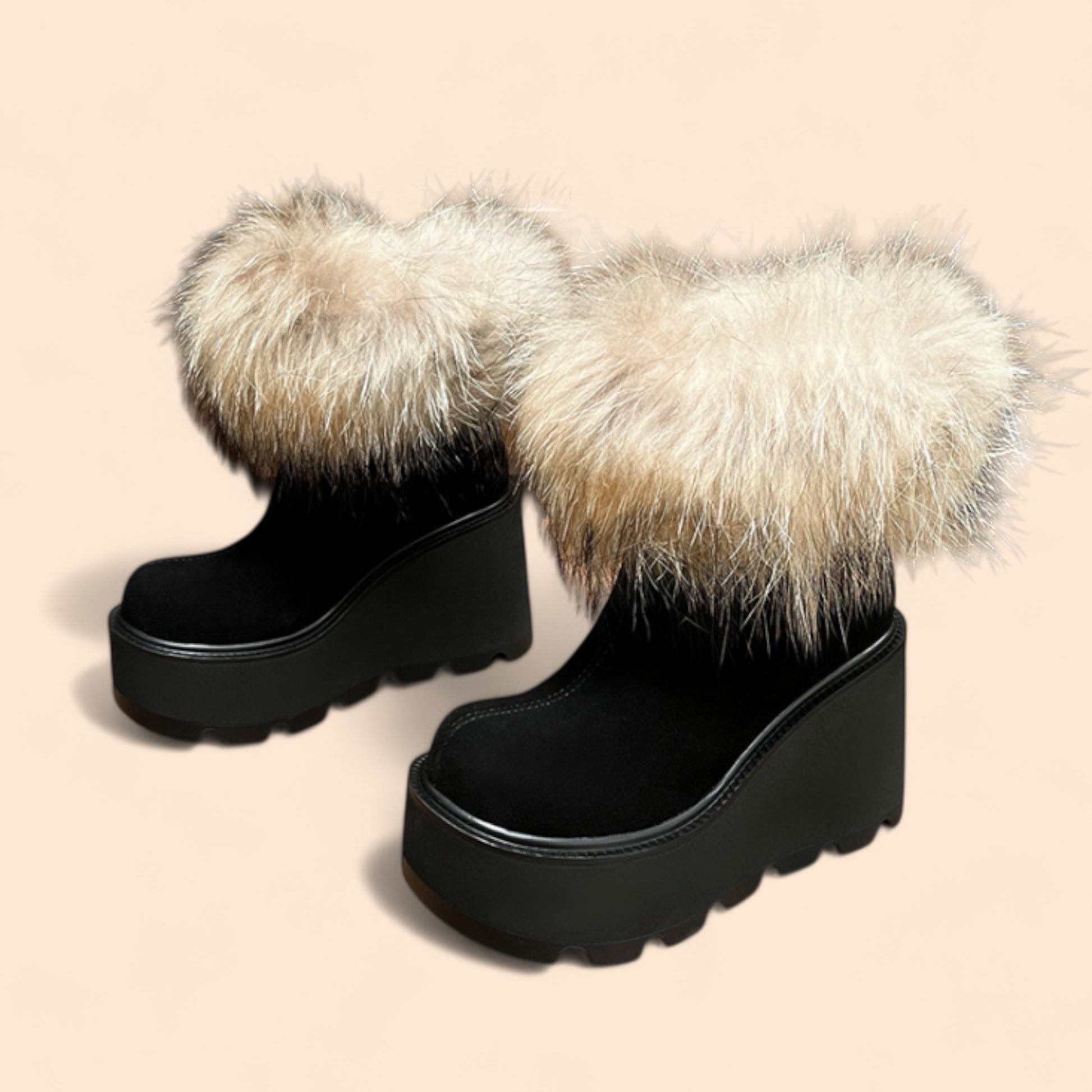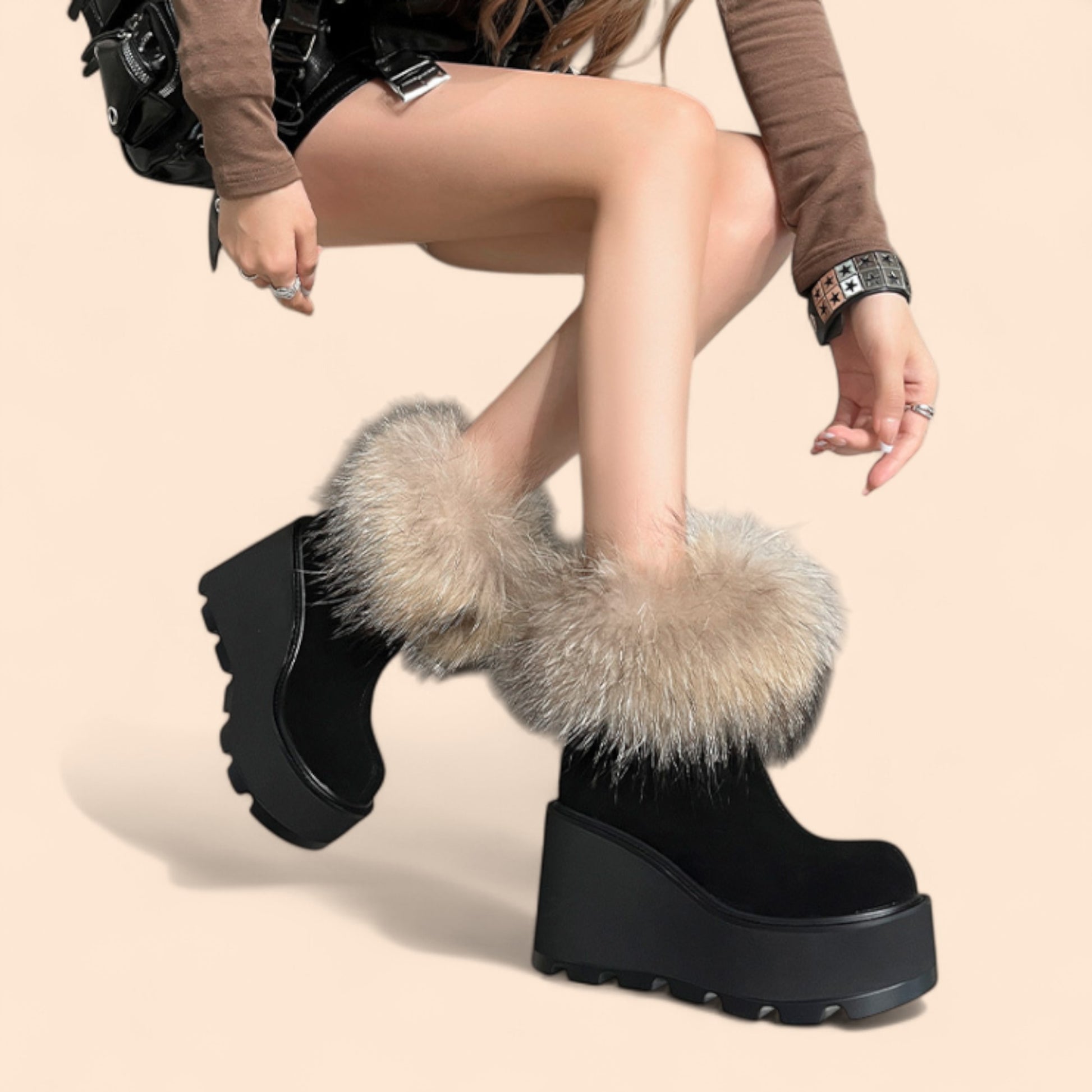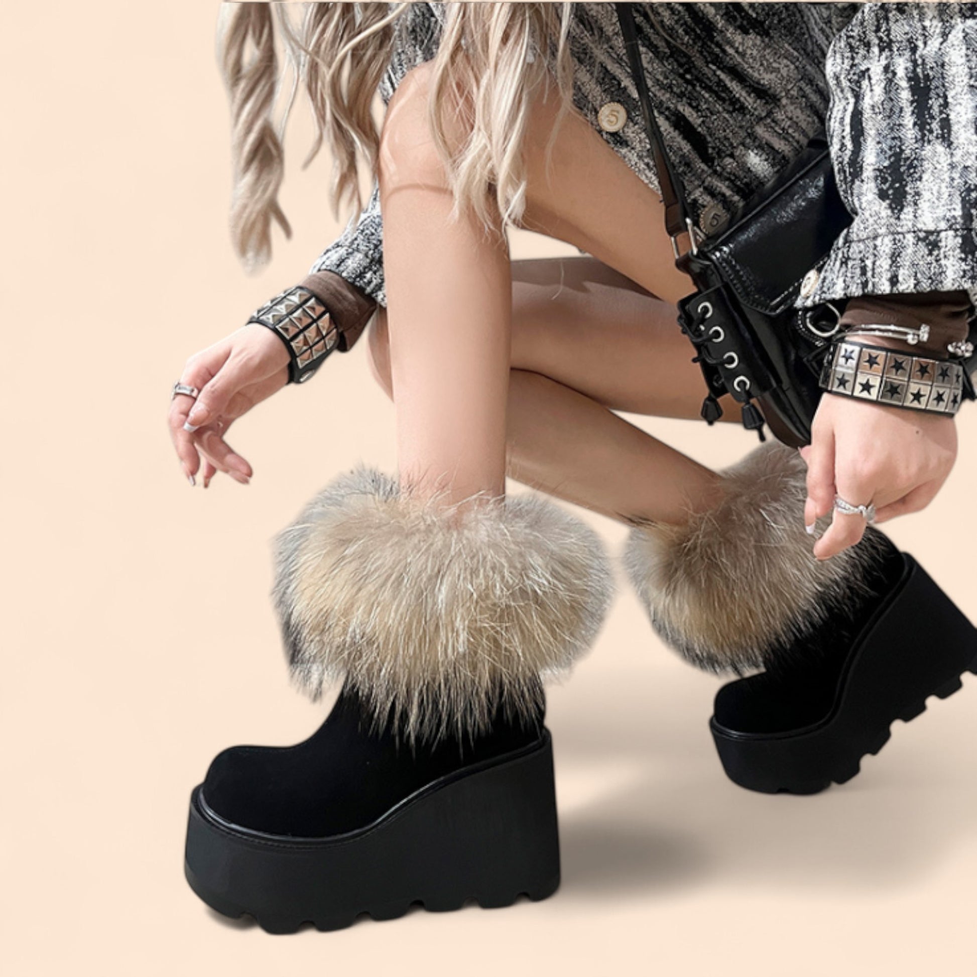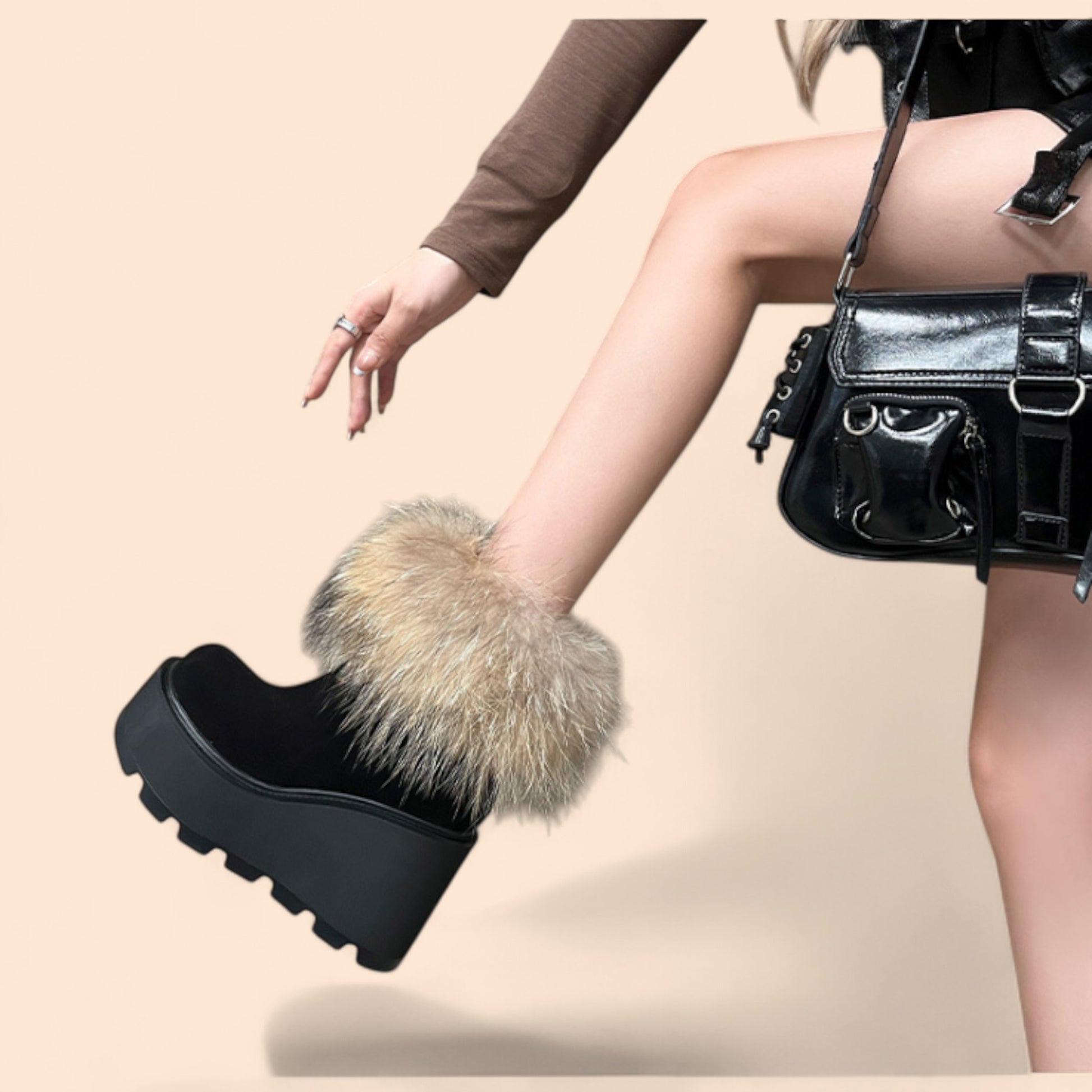 Los botines negros con plataforma Ártico son la opción ideal para quienes buscan un calzado moderno, llamativo y lleno de carácter. Su diseño elegante en color negro, combinado con el detalle de pelo en la parte superior, aporta un aire sofisticado y muy chic, perfecto para destacar tanto en looks urbanos como en outfits de invierno. La plataforma alta estiliza la figura, mientras que la suela robusta asegura comodidad y estabilidad en cada paso.