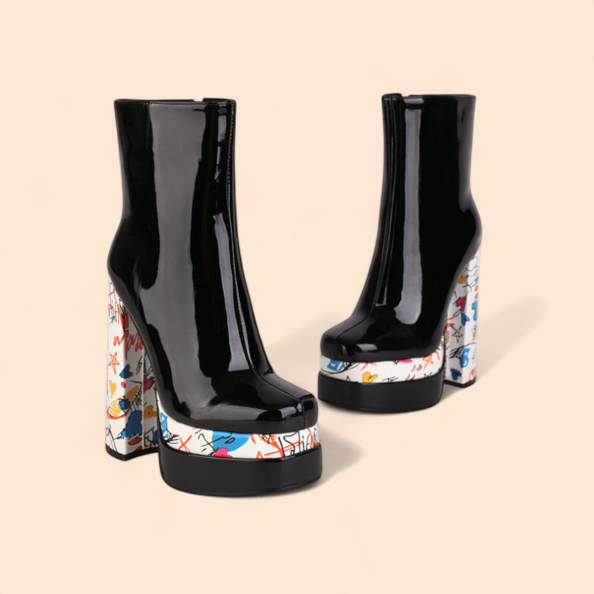 Los botines plataforma negros Icónica son la elección perfecta para quienes buscan un calzado atrevido, moderno y lleno de personalidad. Con su plataforma alta y su tacón ancho de diseño gráfico, este modelo estiliza la silueta, alarga la pierna y aporta altura sin renunciar a la comodidad. Los botines negros con plataforma combinan el poder del negro brillante con el contraste artístico de su base decorada, logrando un equilibrio entre sofisticación y originalidad.