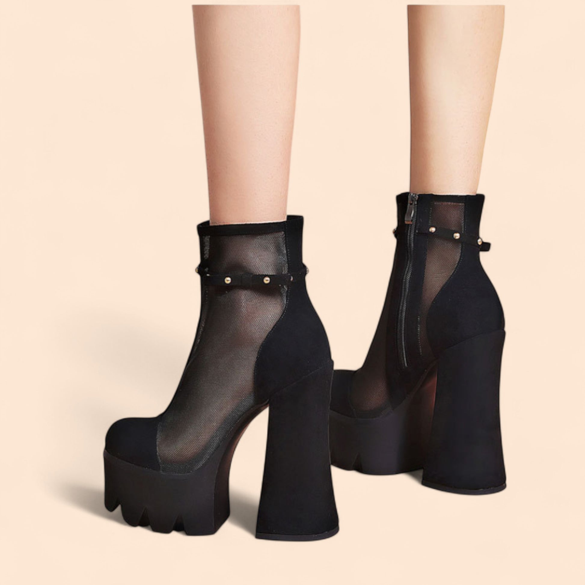 • Botines negros con plataforma gruesa y tacón alto de 14 cm