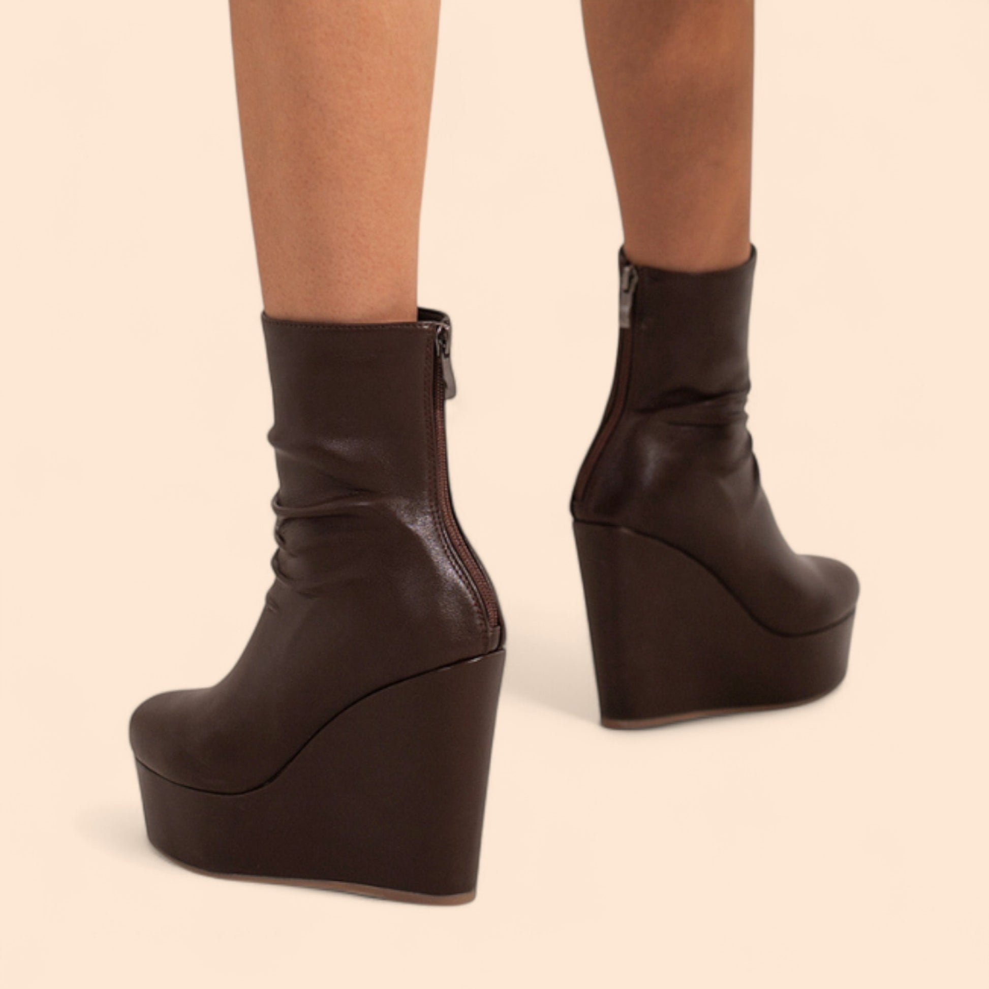 Los botines plataforma marrones son la mezcla perfecta entre elegancia discreta y carácter urbano. Su tono chocolate profundo y su diseño envolvente aportan una sofisticación cálida a cualquier look de temporada.