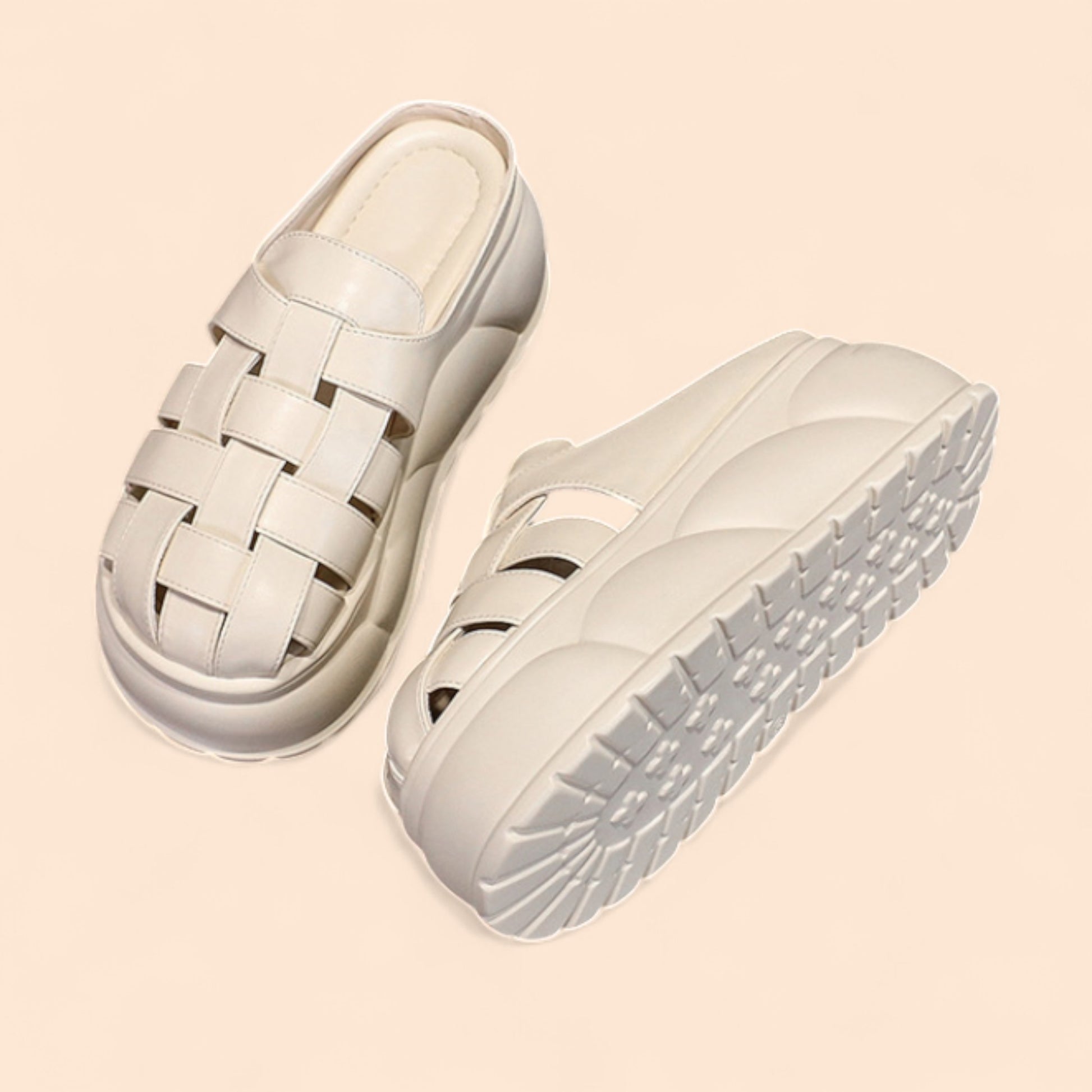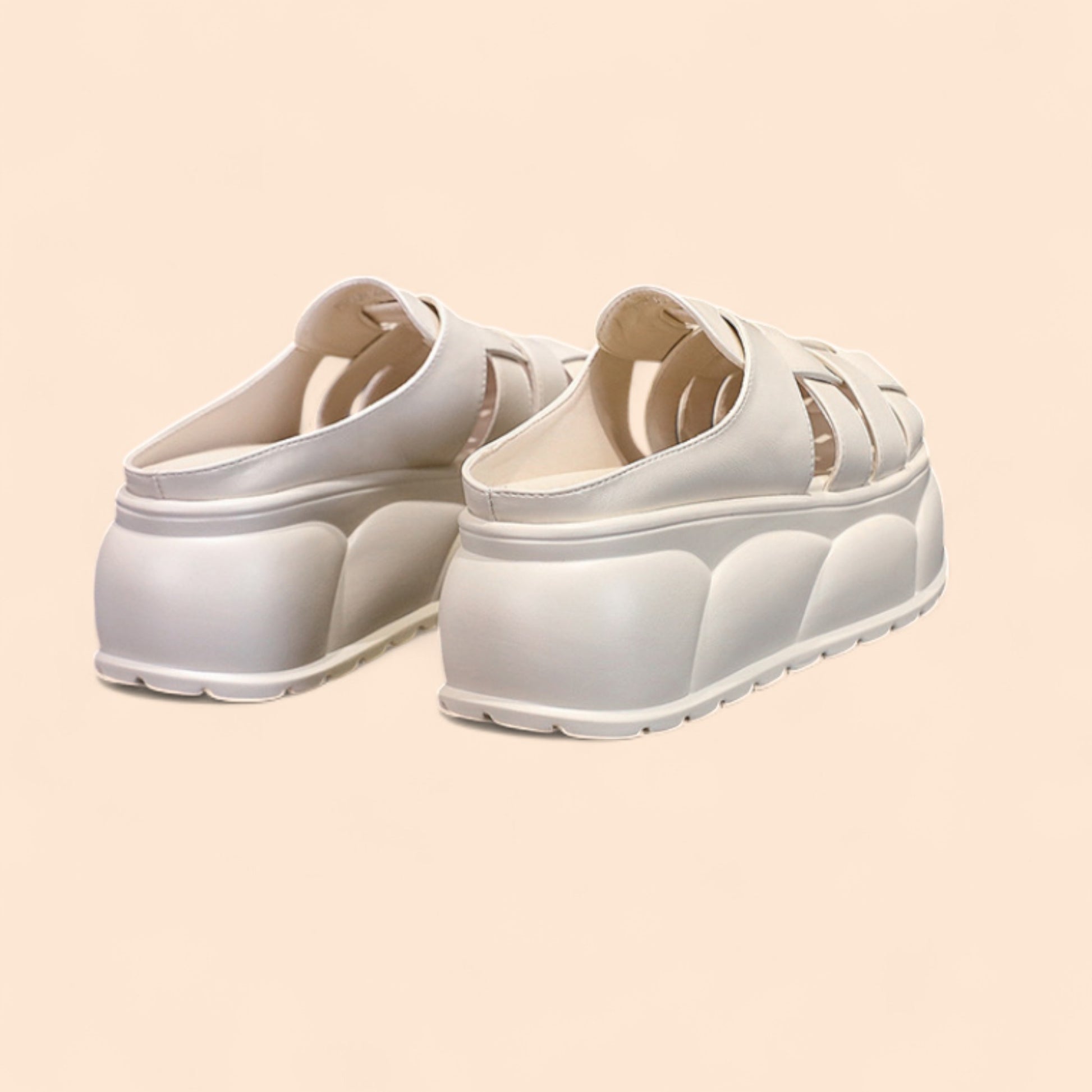 • Chanclas blancas con plataforma inspiradas en el estilo mediterráneo.