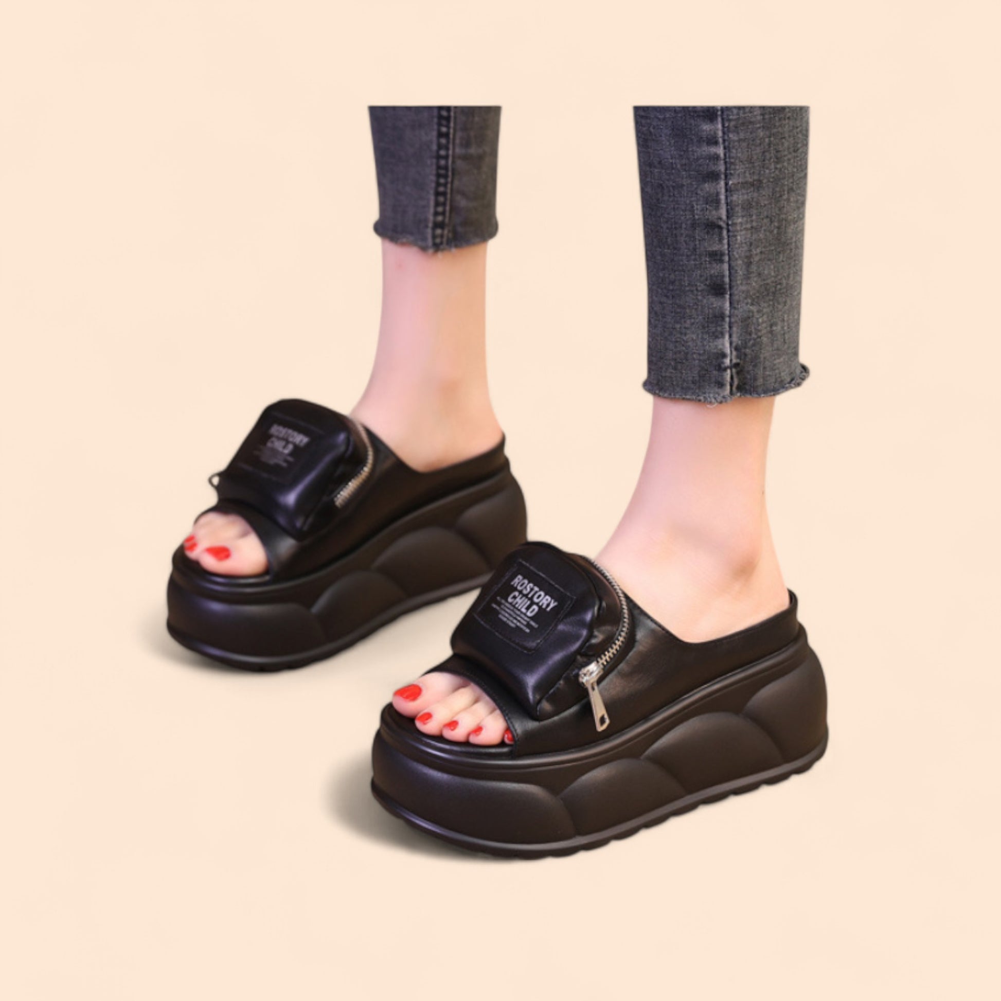 Chanclas Plataforma Negras Urbana zip – El Look Urbano con un Toque Rebelde