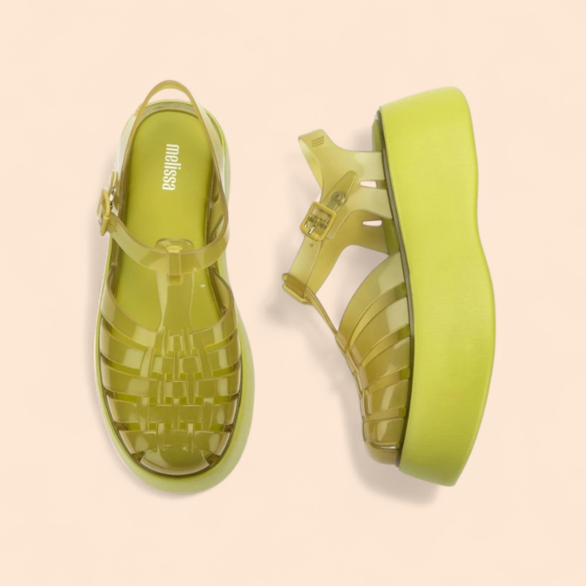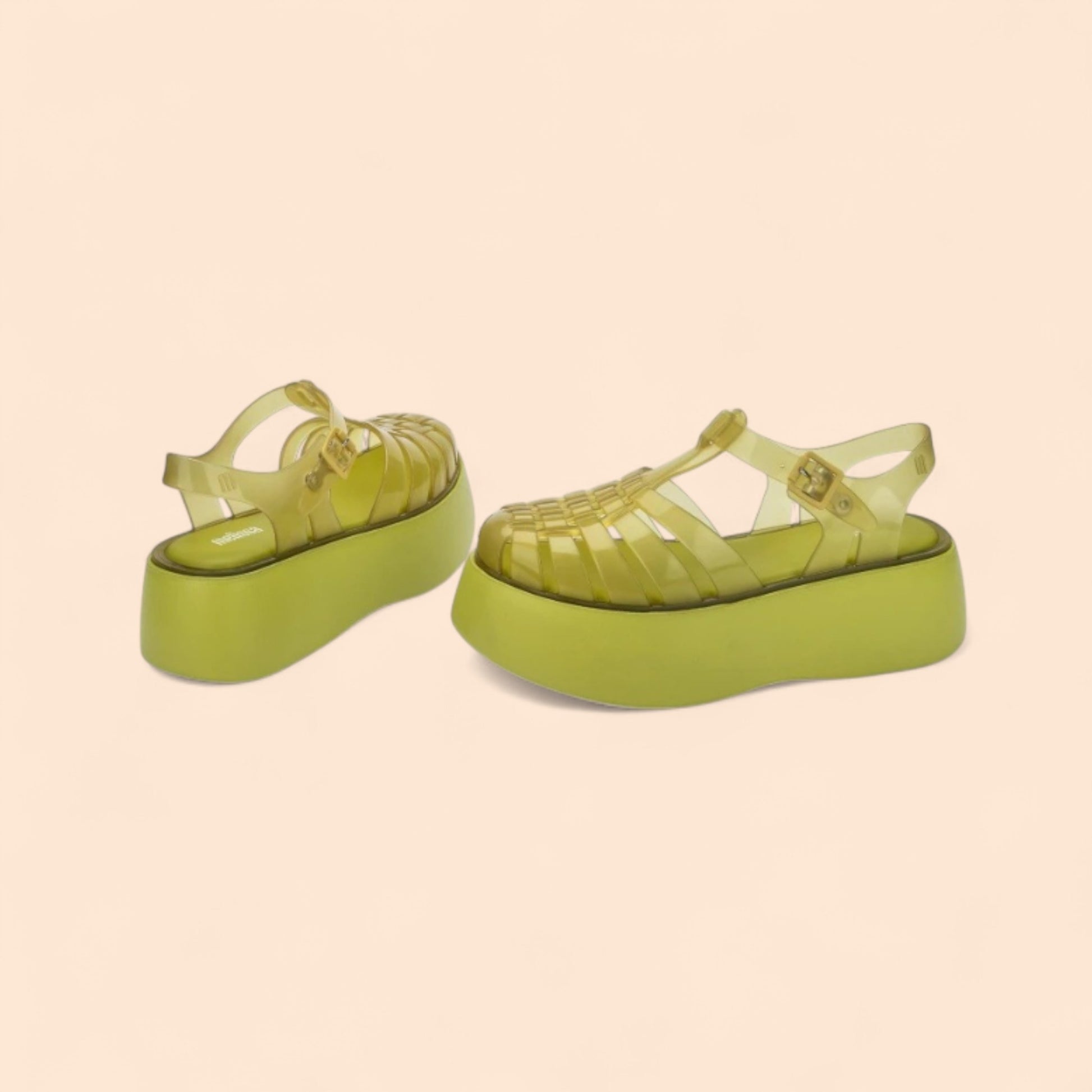 • Sandalias amarillas plataforma con diseño translúcido original.