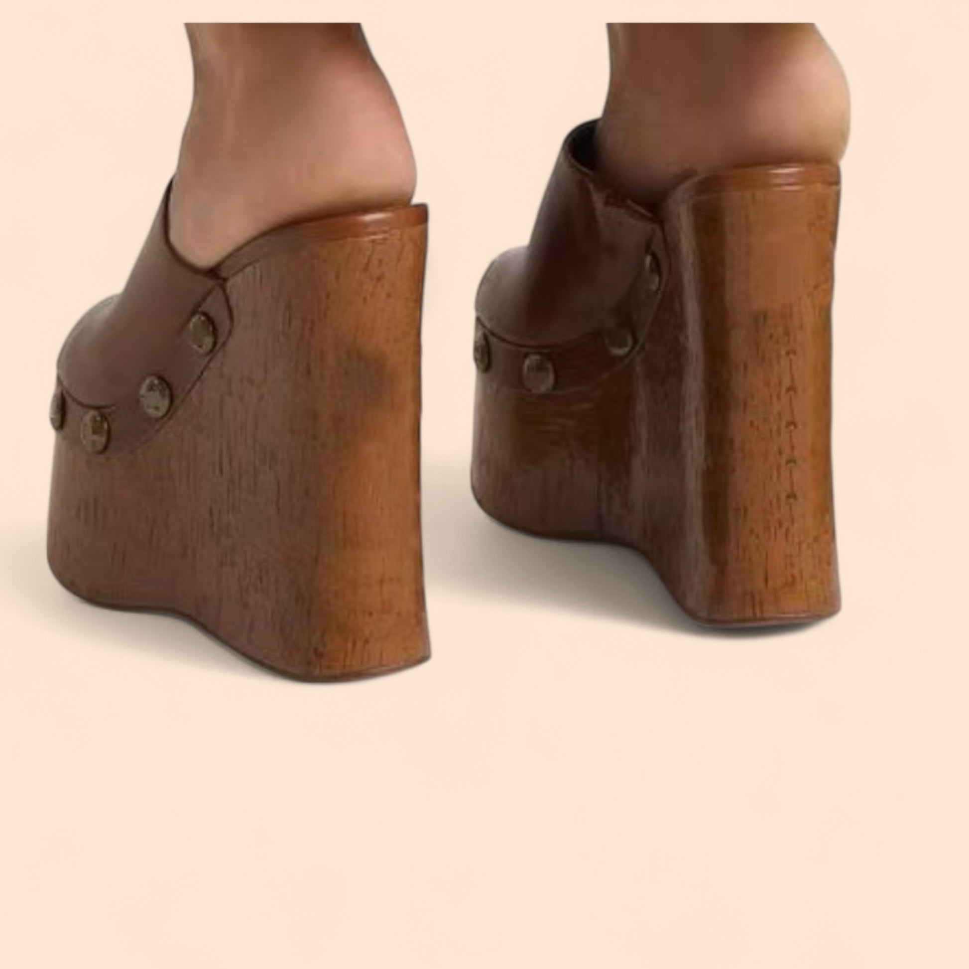 Gracias a su base ancha y tacón de plataforma maciza, Sierra Canela ofrece una pisada estable y segura. El diseño envolvente abraza el pie con suavidad mientras los detalles metálicos añaden un toque retro irresistible. Su tonalidad marrón canela combina a la perfección con prendas en tonos tierra, beige, blanco o verde oliva, y se adapta tanto a conjuntos relajados de día como a estilismos más atrevidos para la noche.