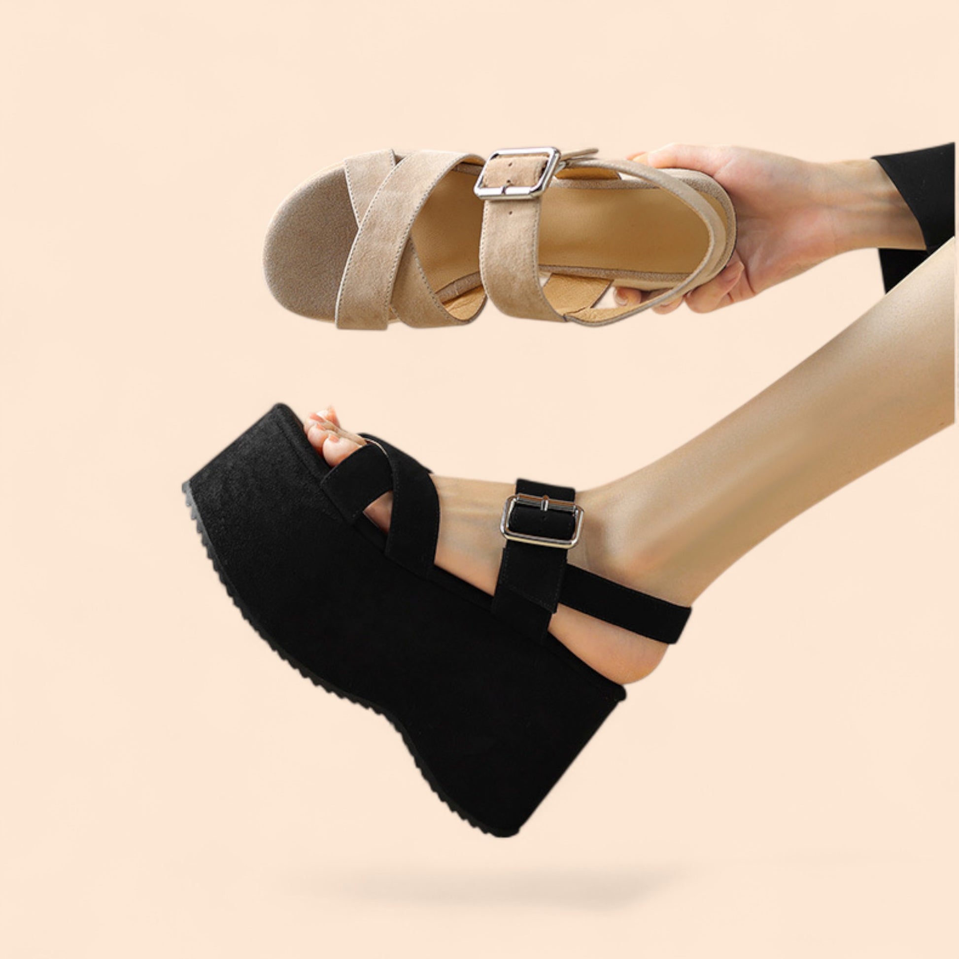 Altura Viva – Sandalias Negras Plataforma con alma mediterránea