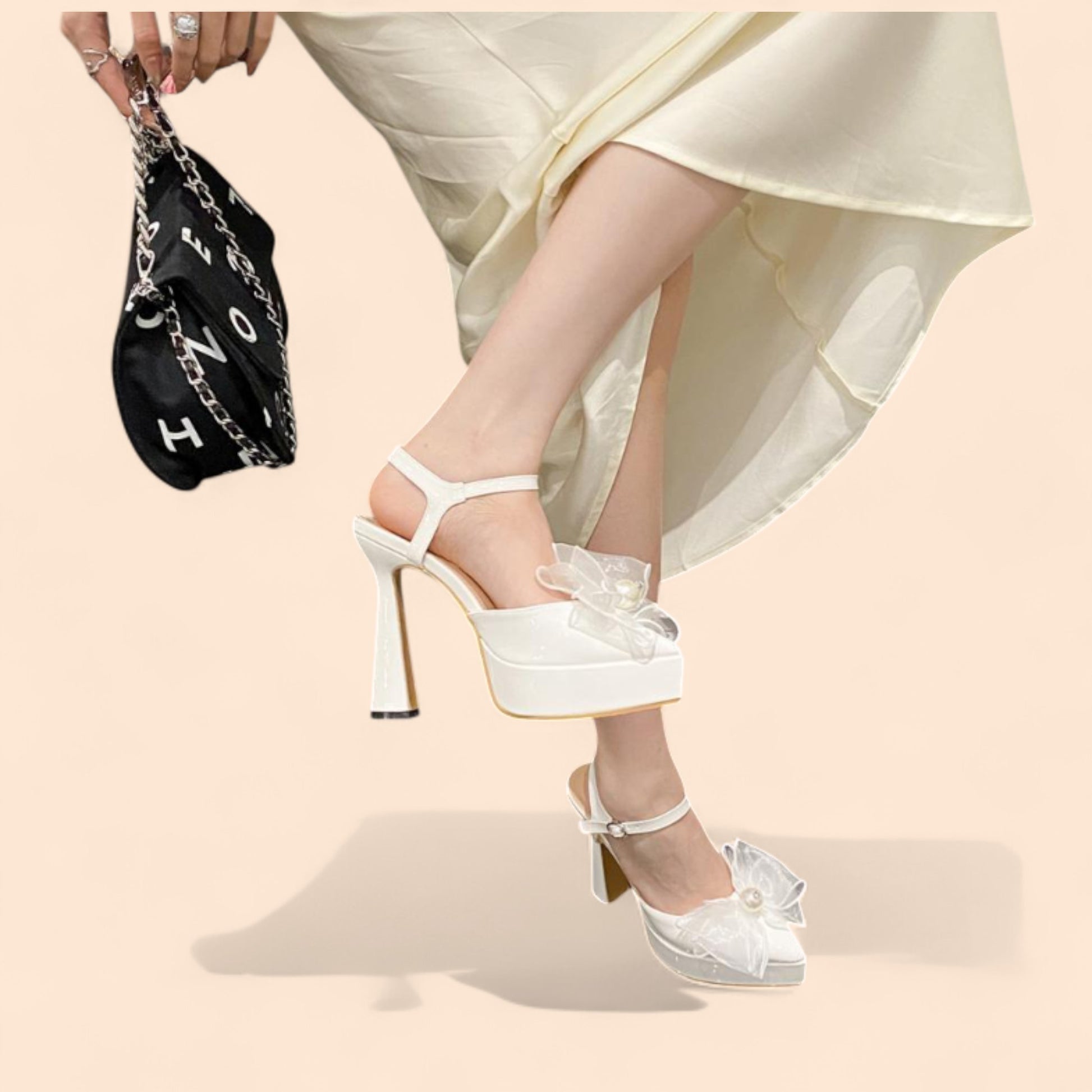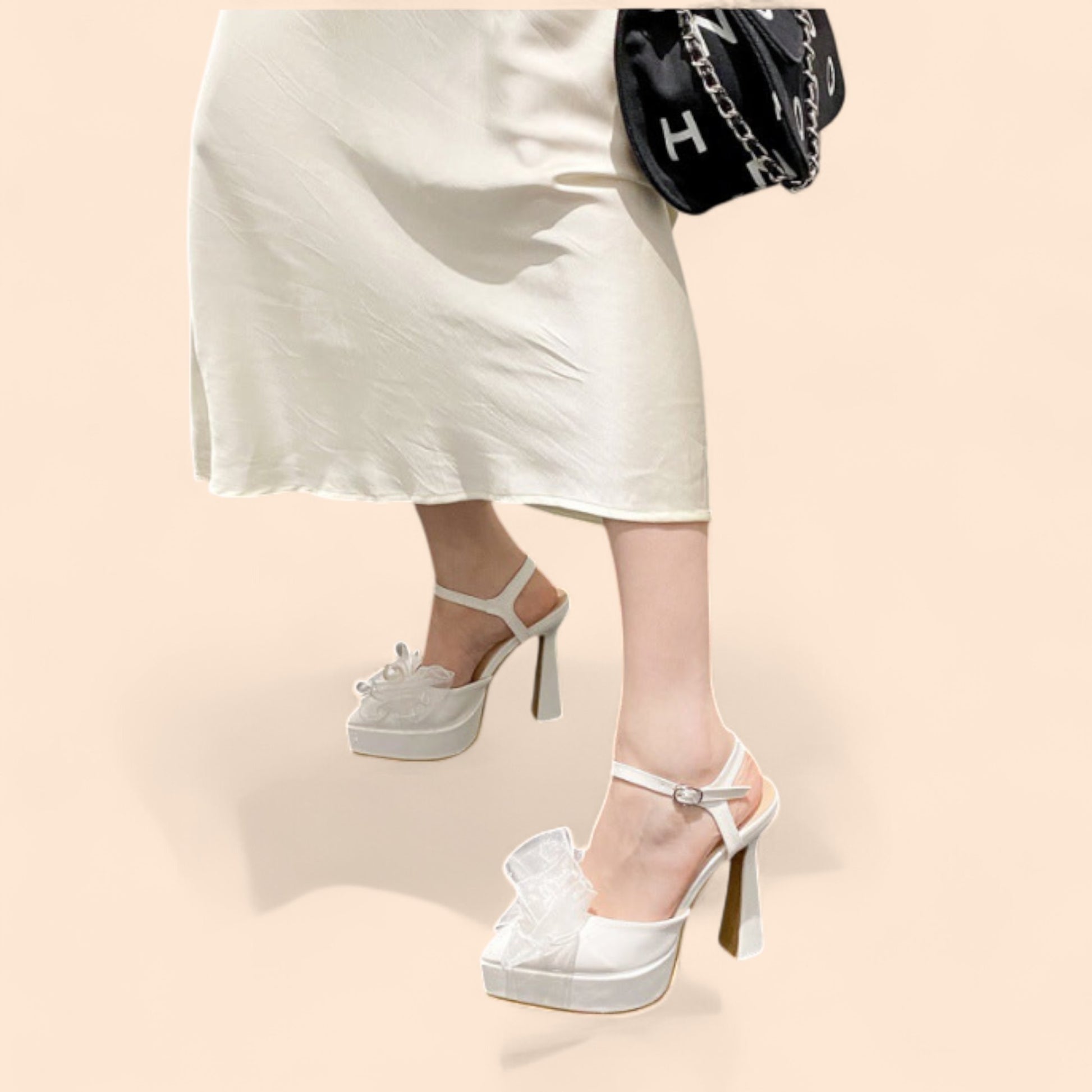 Las sandalias novias plataforma son la elección perfecta para las novias modernas que desean sentirse altas, seguras y radiantes sin sacrificar la comodidad. Este modelo con tacón ancho, plataforma estable y un delicado lazo de organza combina elegancia y dulzura en cada paso.