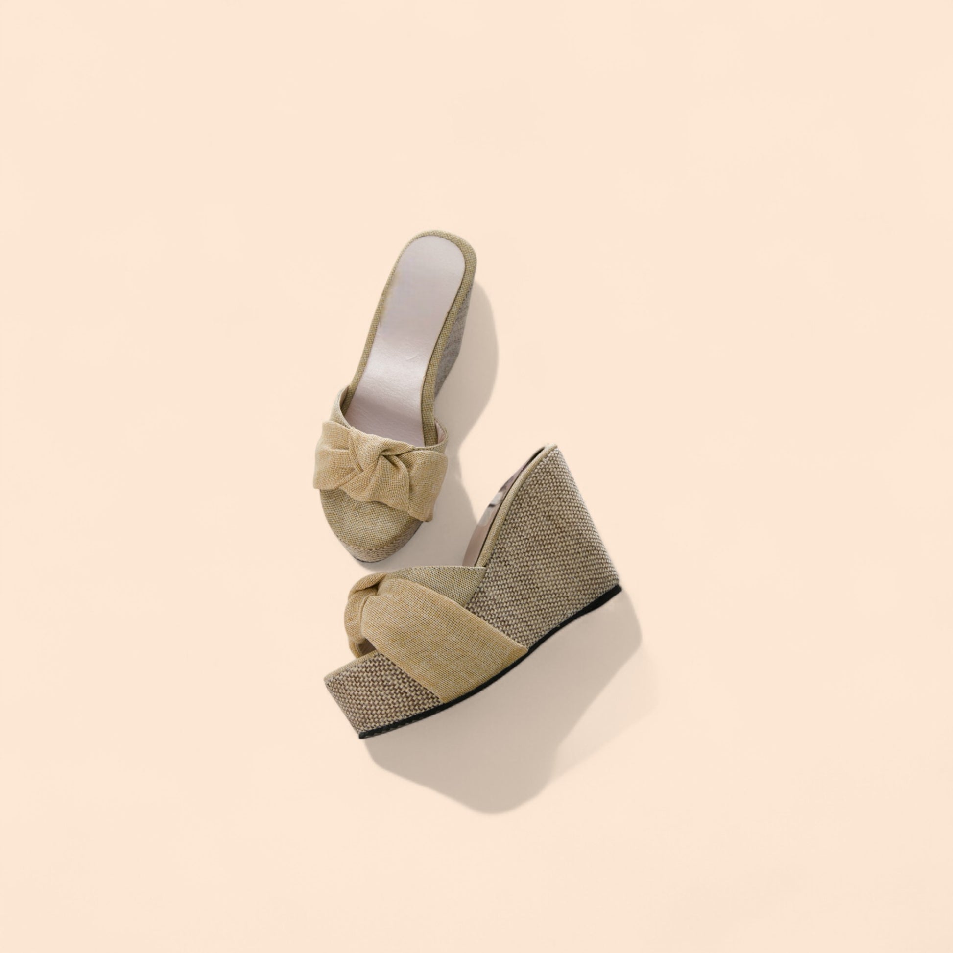 • Sandalias plataforma beige con diseño de nudo y acabado natural.