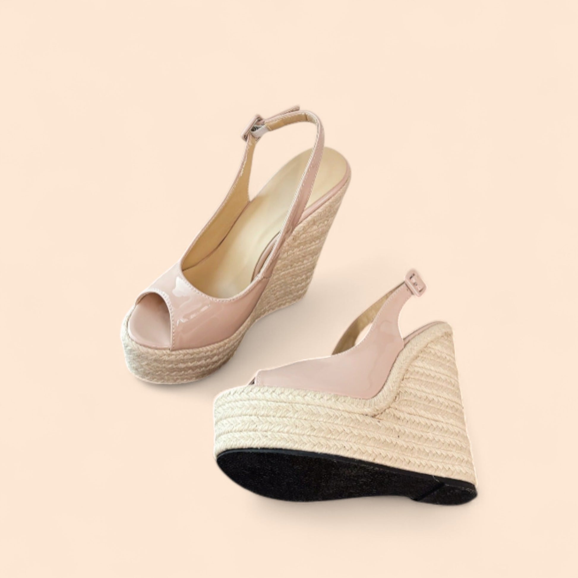 Estas sandalias plataforma beige combinan el encanto natural del yute con un toque de brillo sofisticado. Su diseño abierto y femenino te acompaña con comodidad y estilo en los días más soleados.
