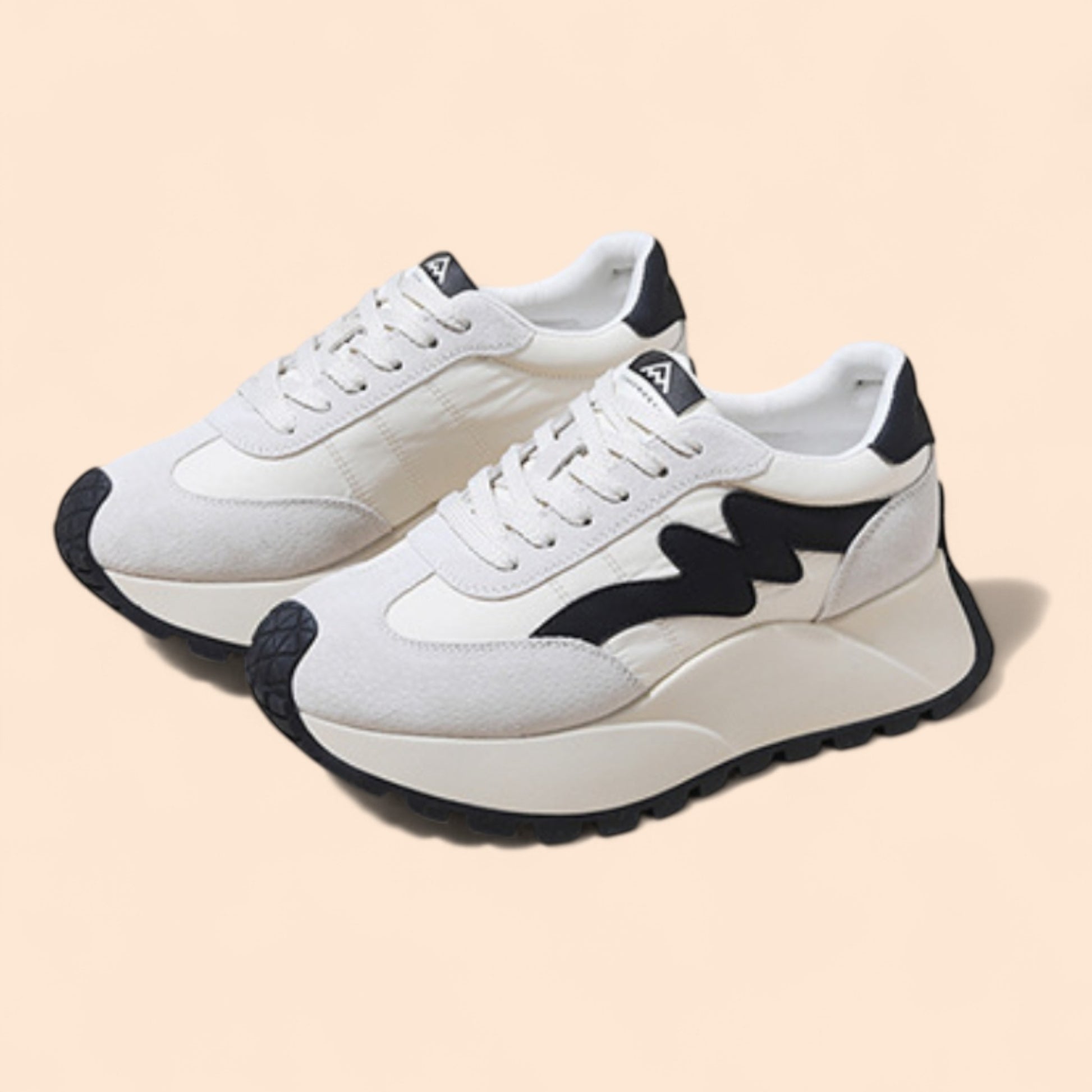 Este modelo destaca por su silueta estilizada, su plataforma equilibrada y su diseño bicolor que aporta un toque deportivo chic perfecto para looks urbanos, casuales. Son unas zapatillas negras de mujer muy versátiles, ideales para caminar, trabajar, estudiar o elevar cualquier conjunto casual.