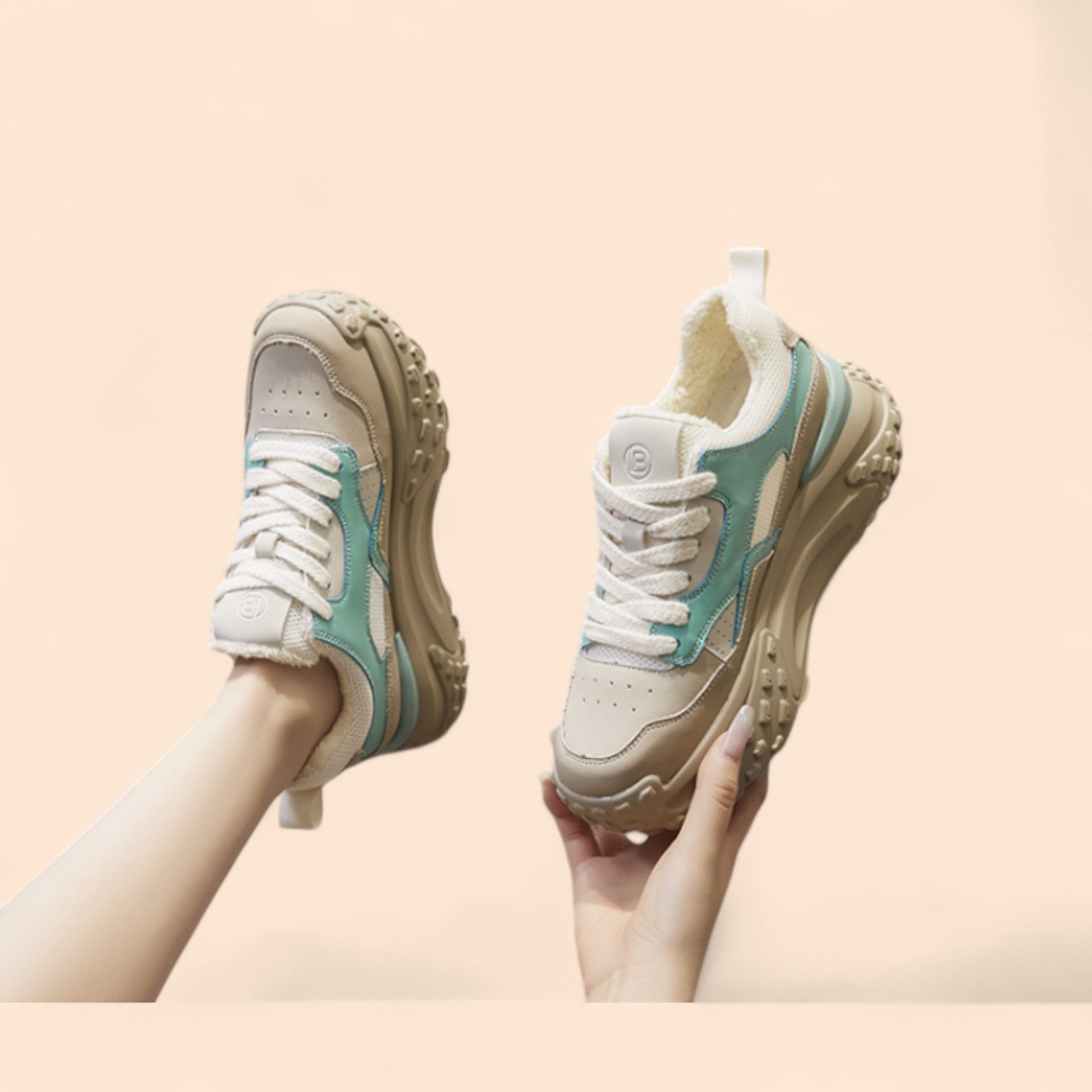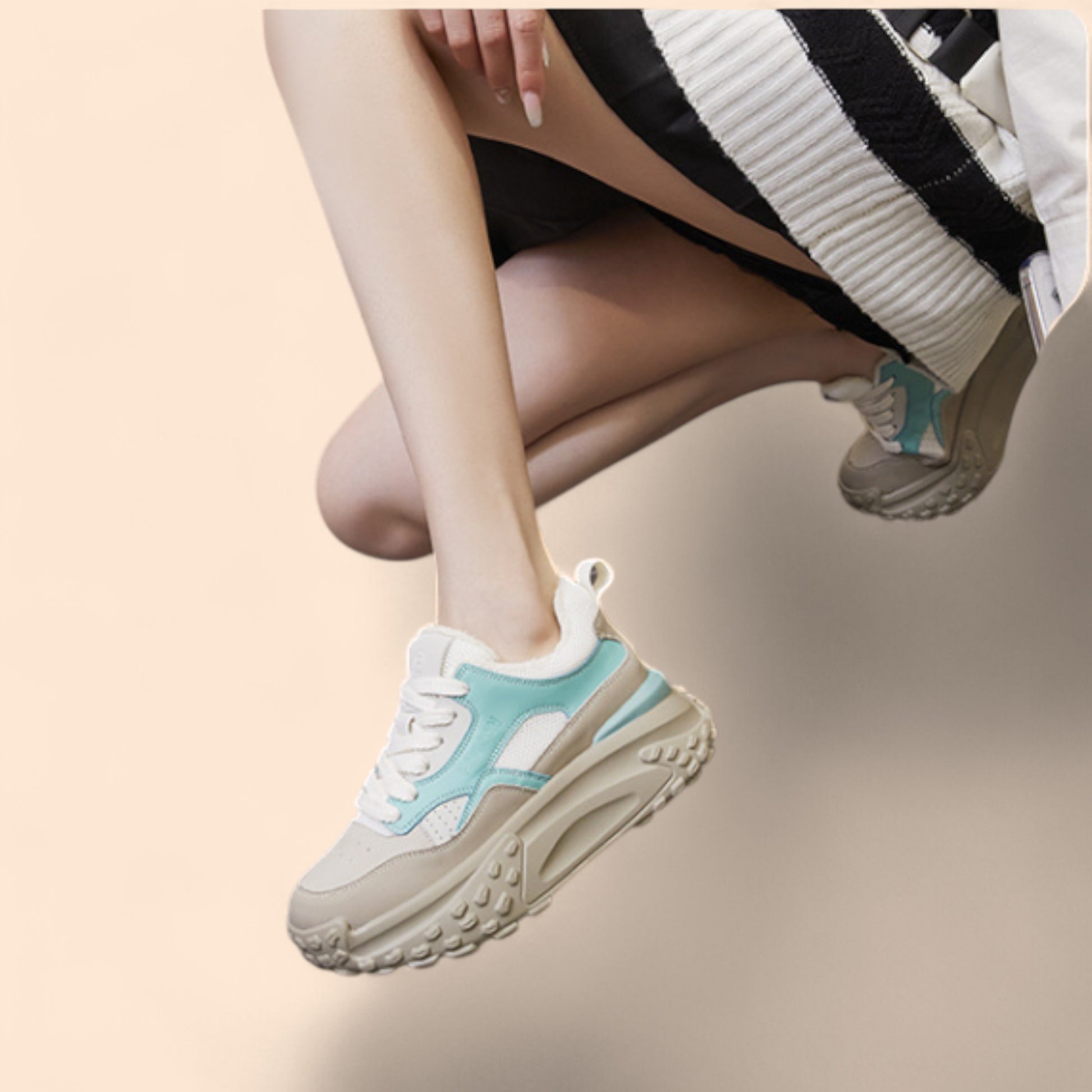 Estas zapatillas plataforma verdes son la elección ideal para quienes buscan un calzado moderno, ligero y con estilo. El tono verde menta, combinado con beige y blanco, aporta una sensación de frescura y naturalidad perfecta para el día a día. La suela gruesa con diseño deportivo no solo eleva tu figura, sino que también mejora la pisada gracias a su base estable y sus relieves antideslizantes. Estas zapatillas plataforma verdes combinan diseño, altura y funcionalidad sin renunciar al confort.