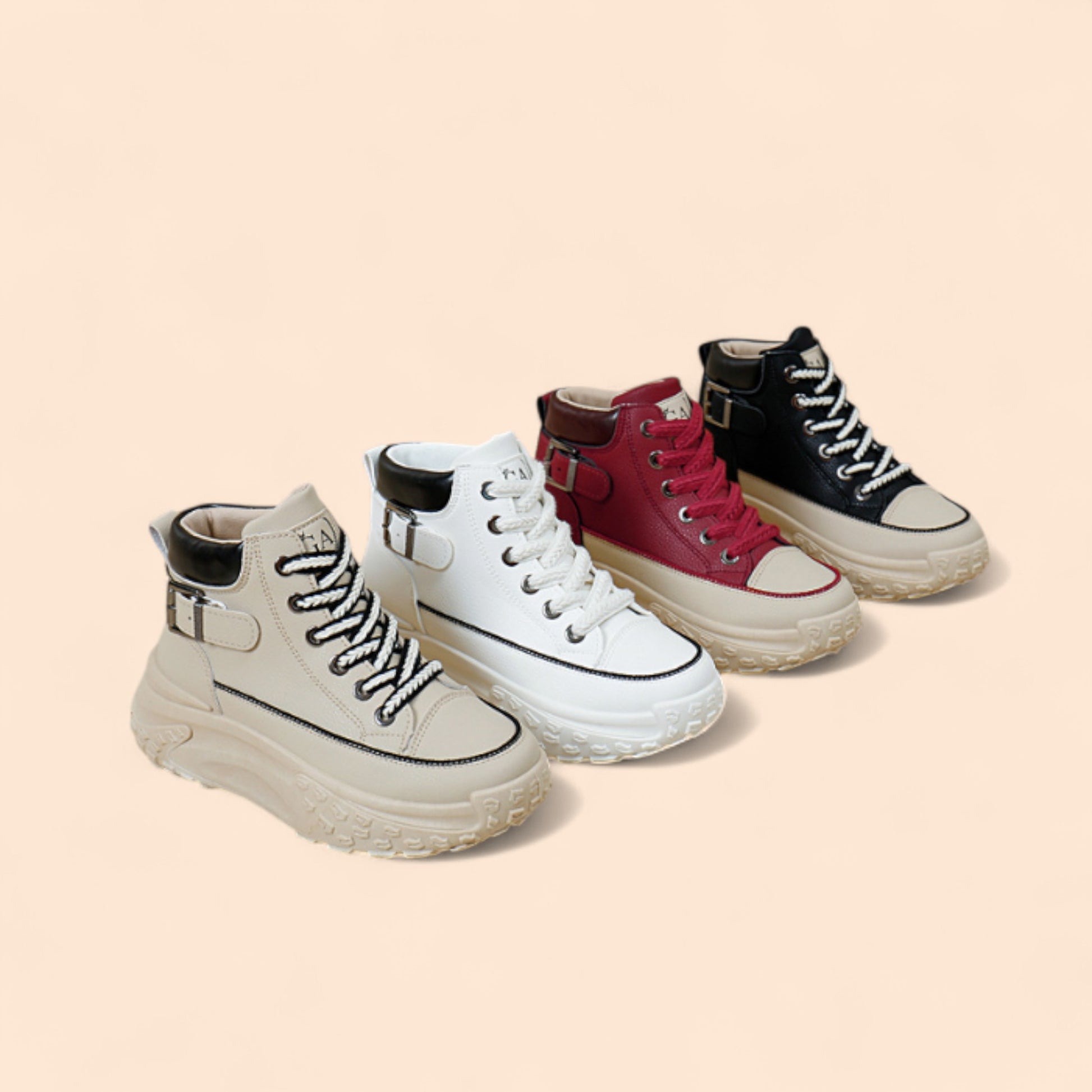 Estas zapatillas rojas mujer plataforma destacan por su diseño atrevido y su silueta robusta con toques deportivos. El contraste entre el rojo intenso y la suela clara genera un look dinámico, ideal para quienes quieren caminar con personalidad y altura. Su plataforma gruesa estiliza sin renunciar a la comodidad, y los detalles como la hebilla lateral aportan un aire moderno y diferente.