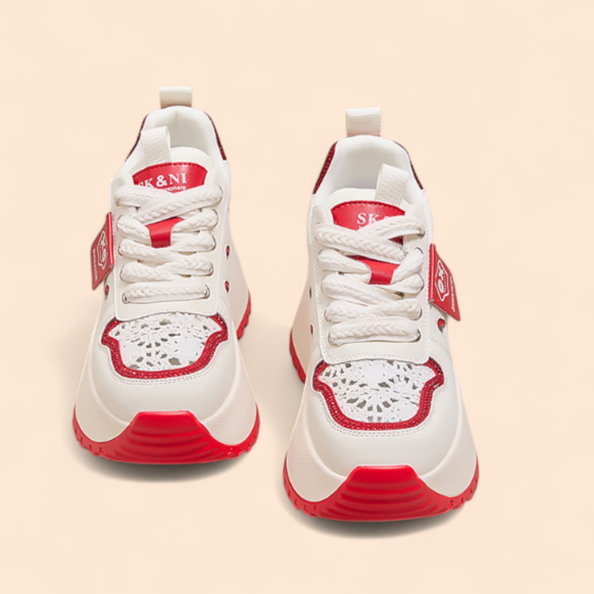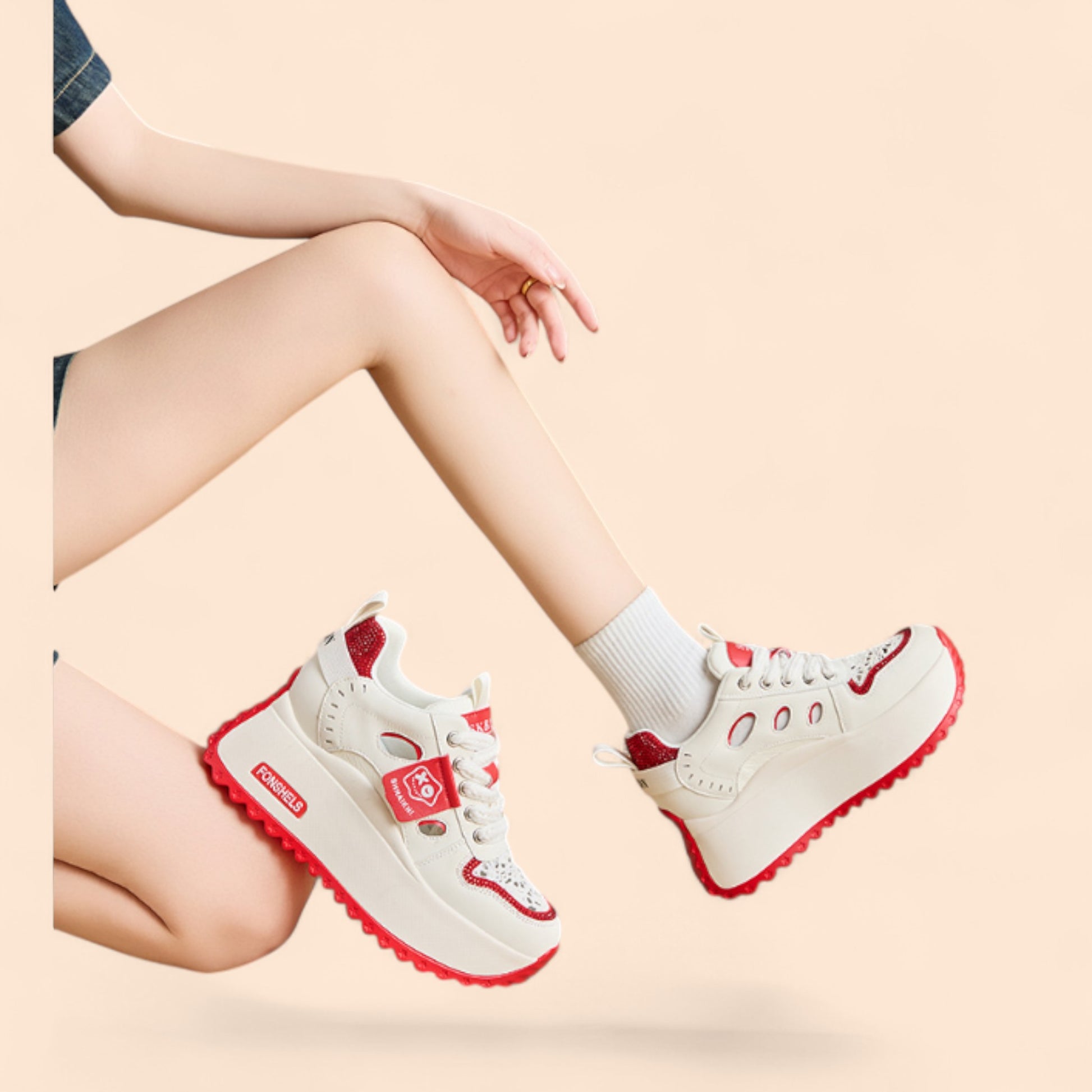 Zapatillas Rojas Mujer Plataforma – Energía Urbana, Altura Deportiva y Detalle Atrevido
