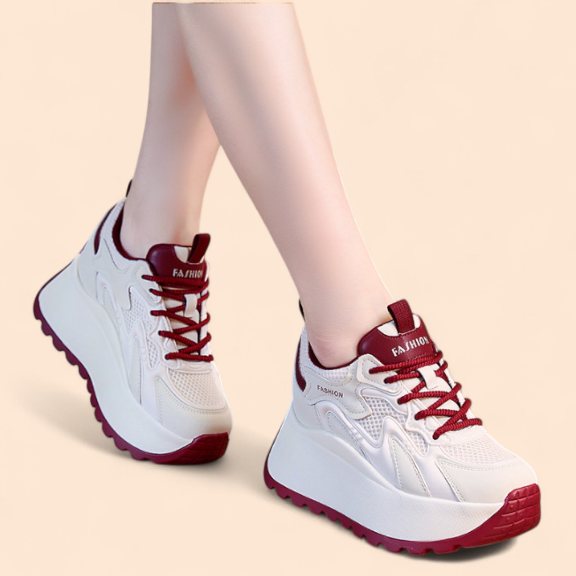 Estas zapatillas rojas mujer plataforma son la combinación perfecta de energía, confort y estilo moderno. Su diseño robusto con suela gruesa aporta altura sin sacrificar la ligereza, mientras que los detalles en color burdeos resaltan la silueta con personalidad. La estructura acolchada y la base antideslizante garantizan una pisada estable, ideal para el día a día. Estas zapatillas rojas mujer plataforma son una opción audaz para quienes quieren destacar con un toque deportivo y femenino.