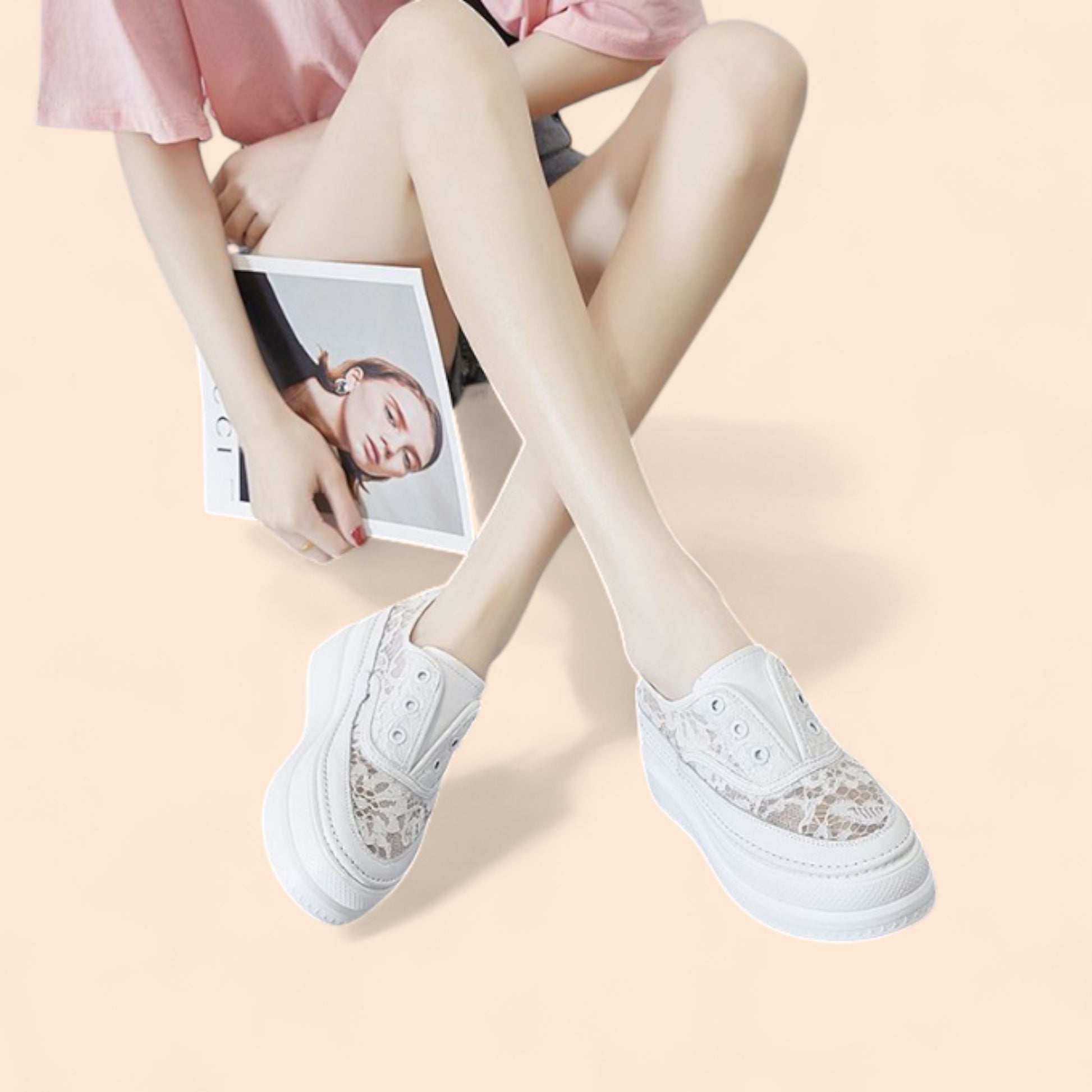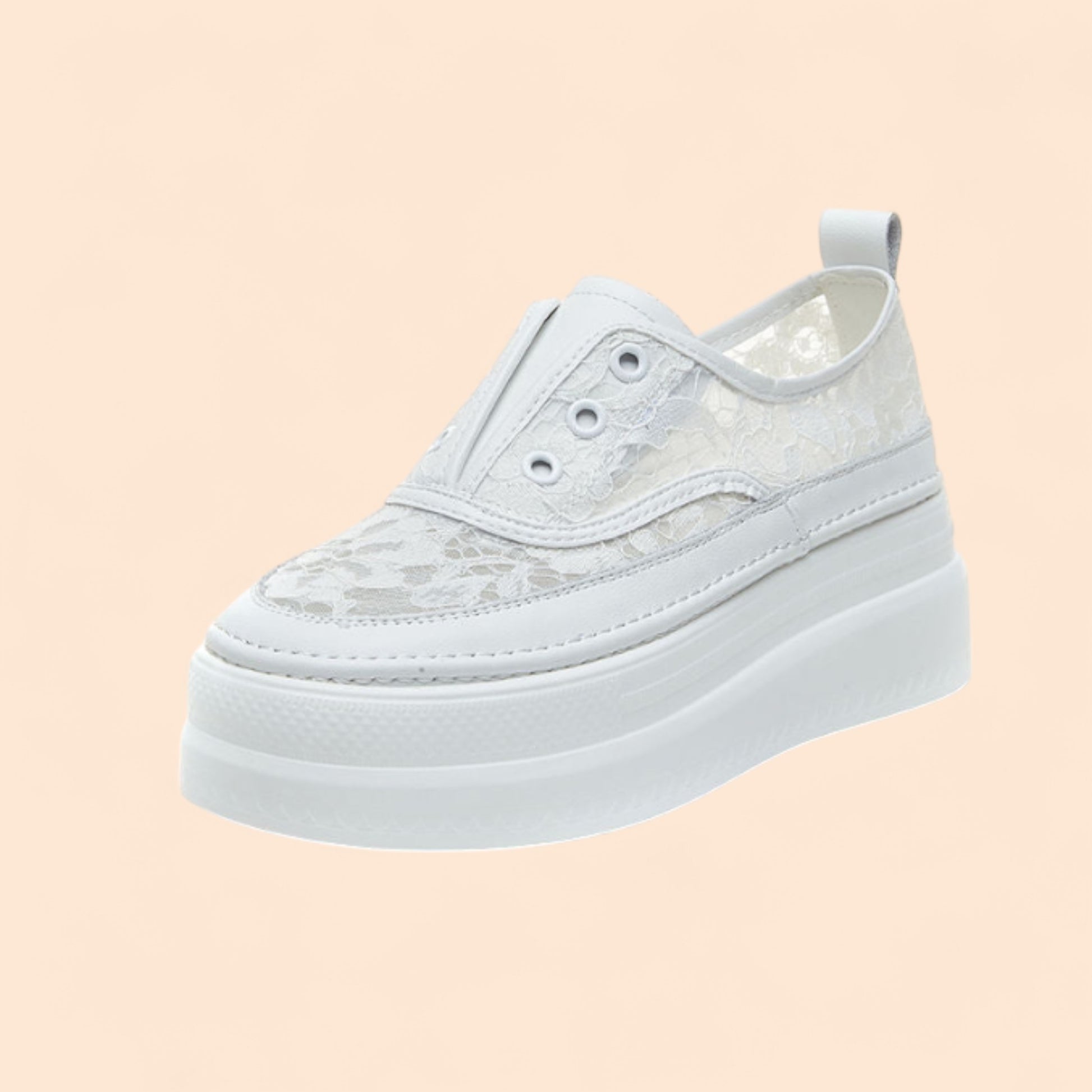 Estos zapatos de novia cómodos con plataforma son la combinación perfecta entre comodidad, altura y encanto nupcial. Su diseño en encaje blanco les da un aire delicado y femenino, ideal para una novia moderna y relajada.